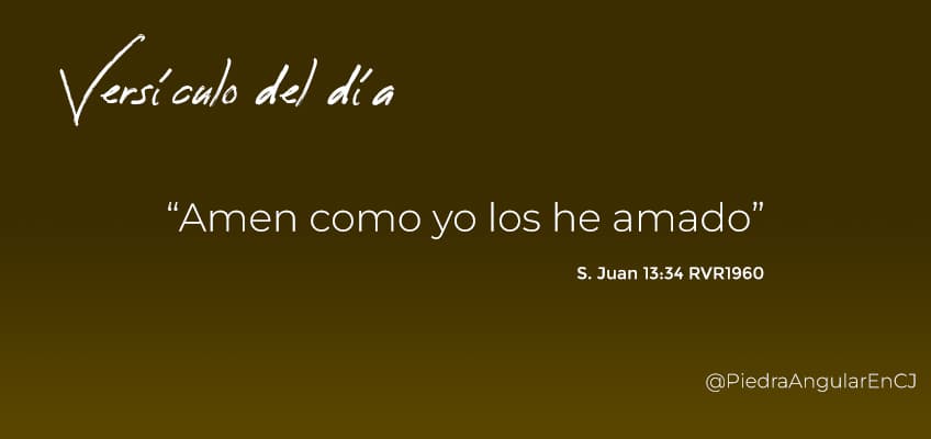 Versículo del día S. Juan 13:34 RVR1960 04/04/2023 por Equipo PACJ Un mandamiento nuevo os doy: Que os améis unos a otros; como yo os he amado, que también os améis unos a otros.Palabra del Señor. [email-subscribers-form id="1"] #PiedraAngularEnCJ #SoyElCaminoLaVerdadyLaVida #JesucristoEsLaVerdad #VersiculoDelDia@PiedraAngularEnCJ Compártenos en tus Redes